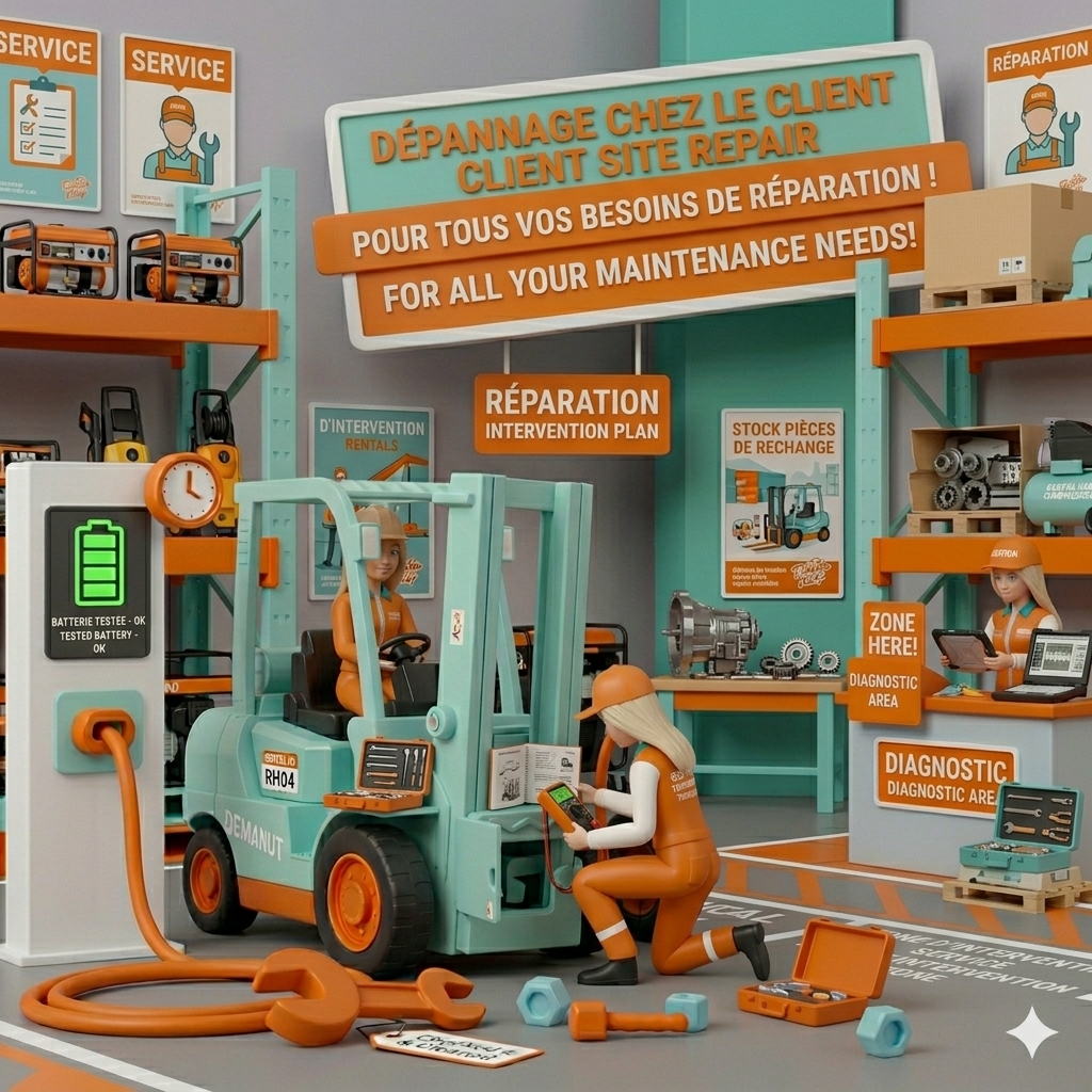 En cas de panne, DEMANUT intervient rapidement pour assurer le dépannage ou le remplacement du matériel, selon les conditions de location.